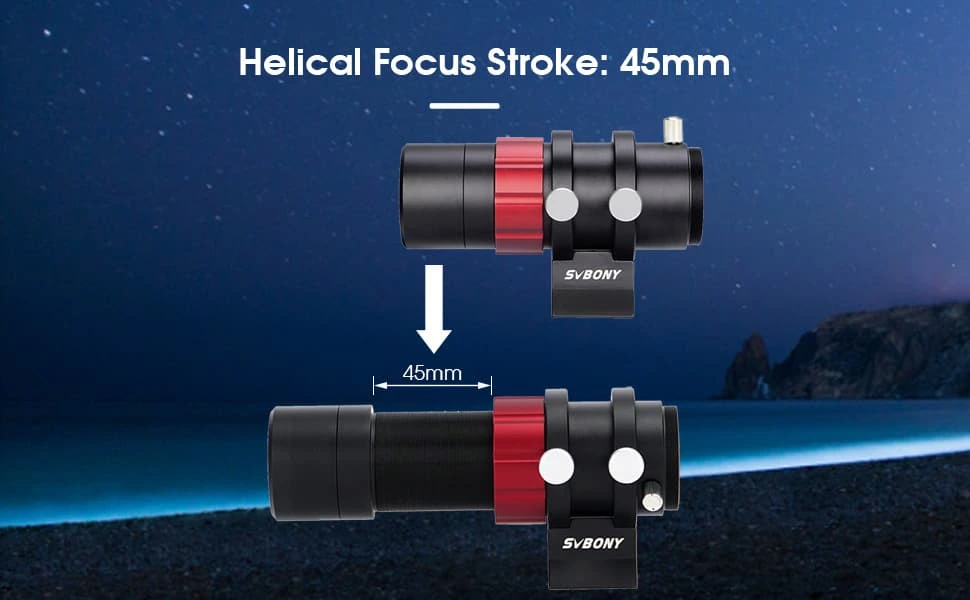 Its fully multi-layer coated achromatic lenses and low-reflection internal structure deliver crisp, bright images without the glare or ghosting that often plagues entry-level guide scopes. The optical quality makes focusing and guiding smoother, helping you achieve longer exposures and finer image details.